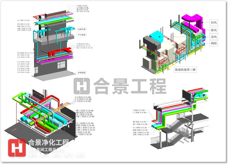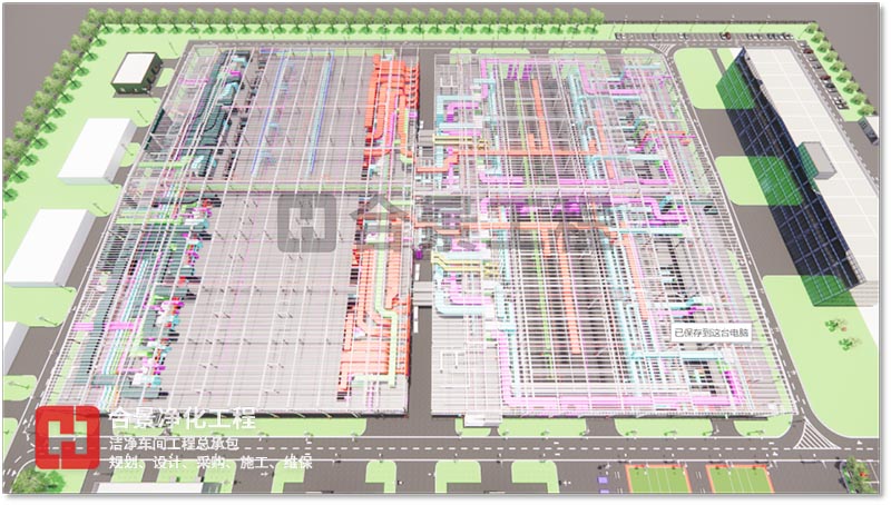 BIM 技術可應用于工程項目規(guī)劃、設計、施工、改建、運維等范圍,為產(chǎn)業(yè)鏈貫通、工業(yè)化建造和建筑創(chuàng)作提供技術保障。合景智慧建設(廣東)有限公司在潔凈廠房工程建設中,以BIM技術為全周期模擬,對工程全局,即潔凈環(huán)境、人流物流、暖通、電氣工程、整廠能耗、質(zhì)量、安全等方面提供方案優(yōu)化和科學決策提供依據(jù),與各專業(yè)協(xié)同工作、項目的虛擬建造和精細化管理,為工業(yè)潔凈室建設提質(zhì)增效、節(jié)能環(huán)保創(chuàng)造條件,虛實結(jié)合,賦能項目,打造交鑰匙項目。